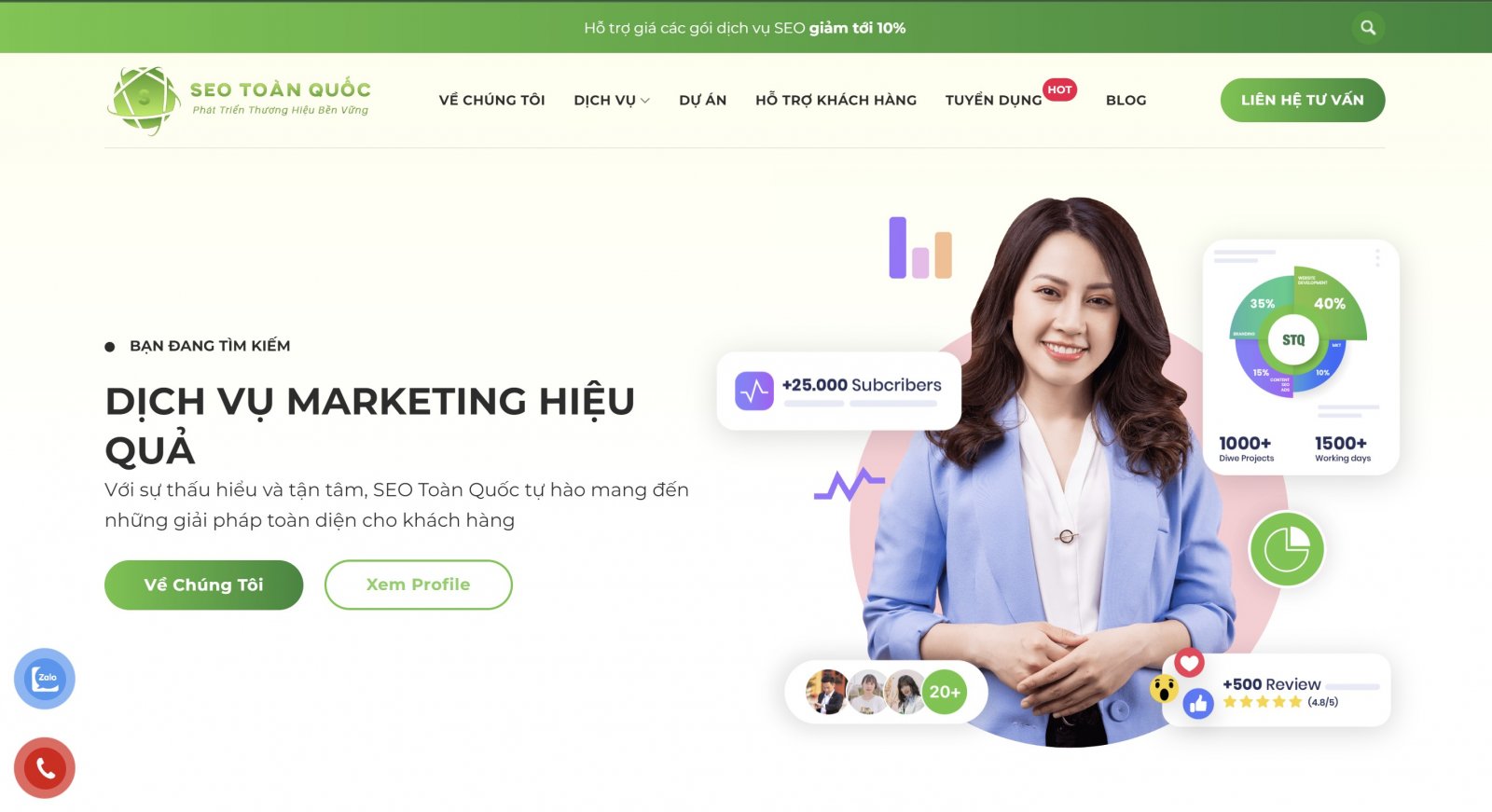 SEO Toàn Quốc chuyên sâu về lĩnh vực Digital marketing, đưa ra giải pháp tối ưu và đã đồng hành cùng hơn 1000 khách hàng đối tác trong và ngoài nước